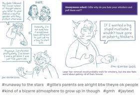 Also, the ramifications of much of RttS’s wordbuilding really, really aren’t thought through. Jay treats Gillie, the deaf catgirl, too much like a normal deaf person and not someone accidentally genetically engineered to be disabled. Seriously, I never had to bring up the fact that she’s a catgirl because it was never important to the review. Why do a sci-fi webcomic in the first place? It's clear Jay only wanted to pat himself on the back for disabled “representation”. Oh, and apparently Gillie now suffers because the lab accidentally made her deaf, but turns out she is actually male, was transitioned at 5, and that's portrayed as good. Are you fucking serious?